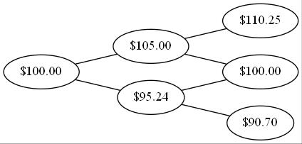 S =100K =95u =0.05# up return per periodr =0.03# interest rate per periodn =2# number of periodsd =1/(1+u) -1# down return per periodp = (r-d) / (u-d) # risk-neutral prob# Terminal stock prices and call payoffsx = [S*(1+u)**(n-2*i) for i inrange(n+1)]v = np.maximum(0, np.array(x)-K)# Backward inductionwhilelen(v) >1: v = (p*v[:-1] + (1-p)*v[1:]) / (1+r)print(f"Risk-neutral prob p = {p:.4f}")print(f"Call value (K={K}): ${v[0]:.2f}")